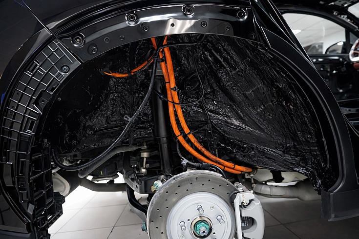 Заводская шумоизоляция BYD Tang L скромная. Виброизоляция нанесена хаотично. Эффект низкий.