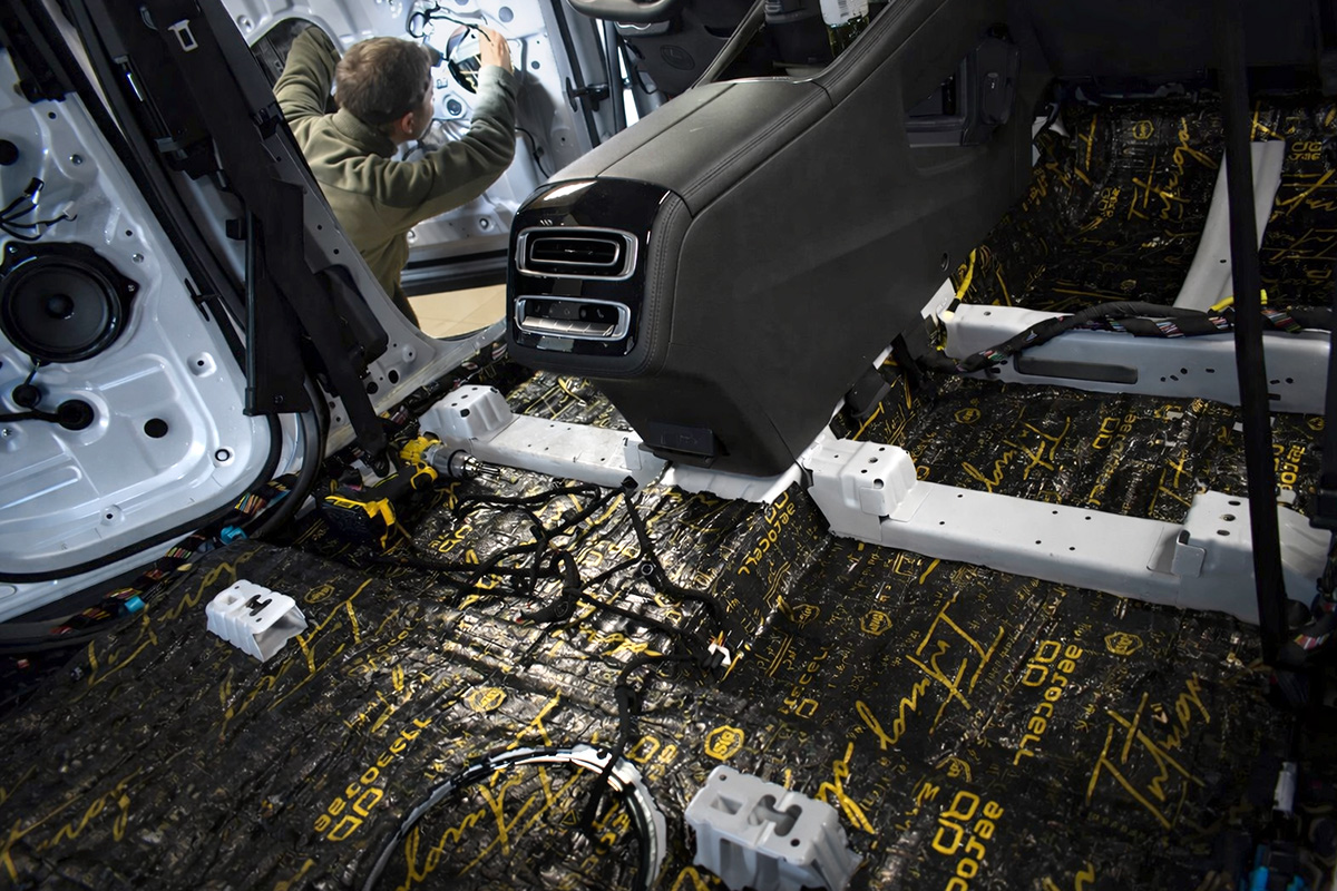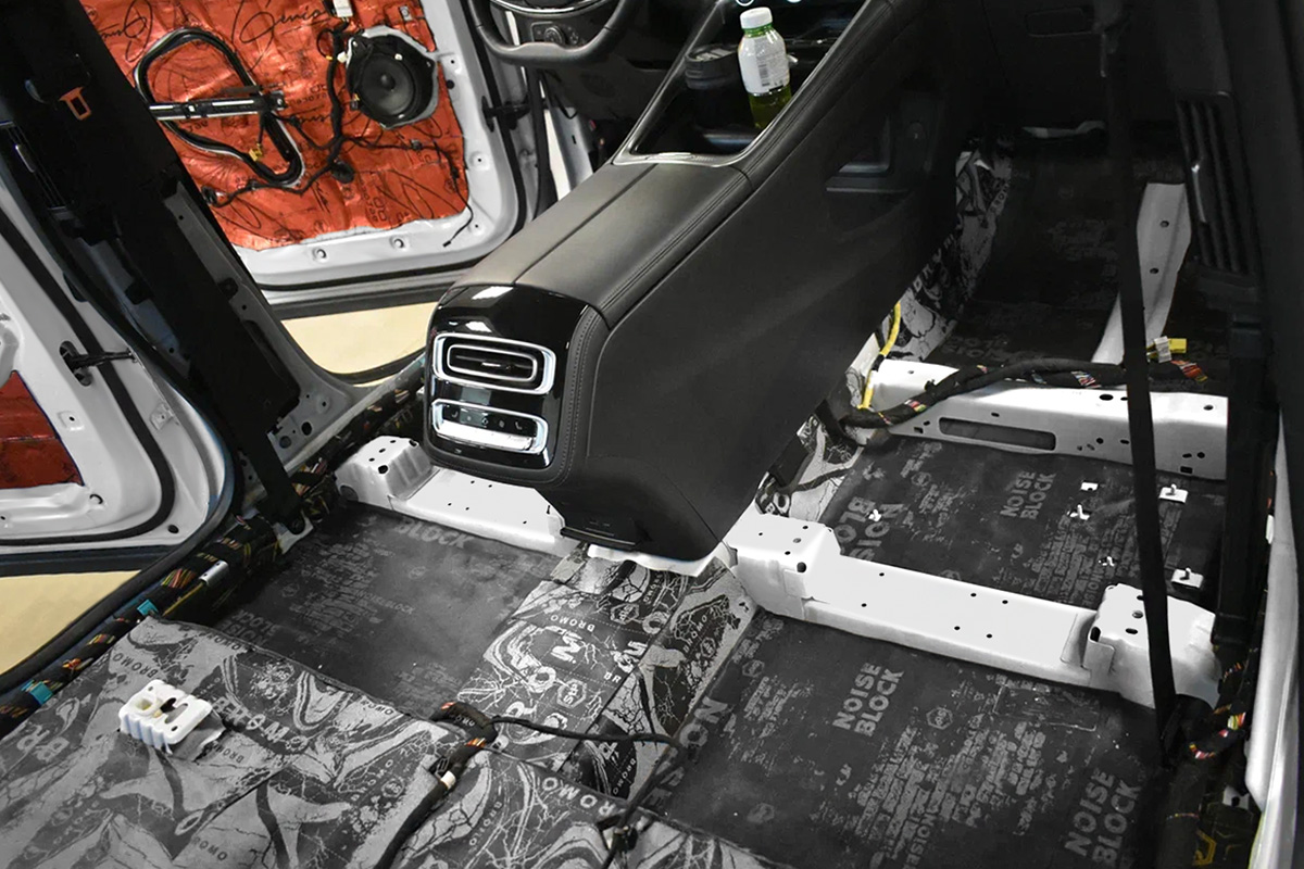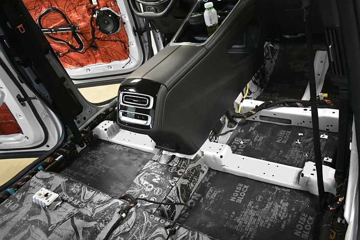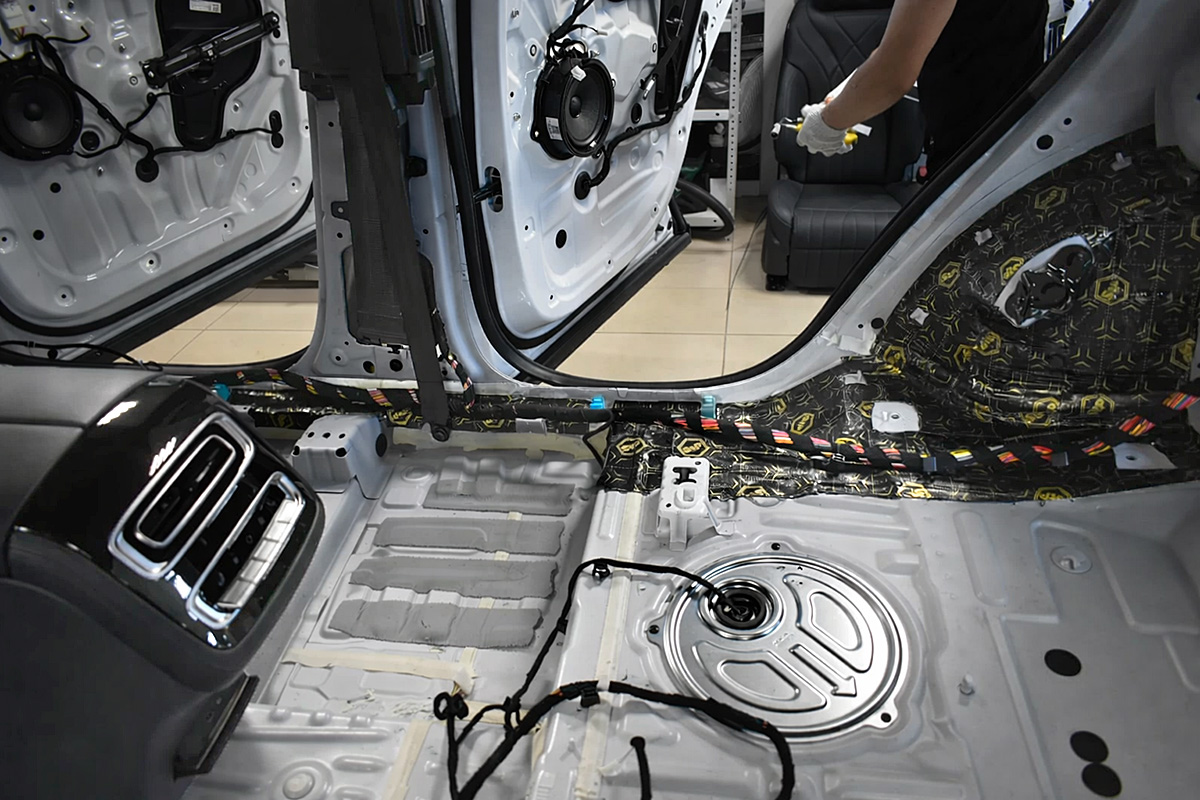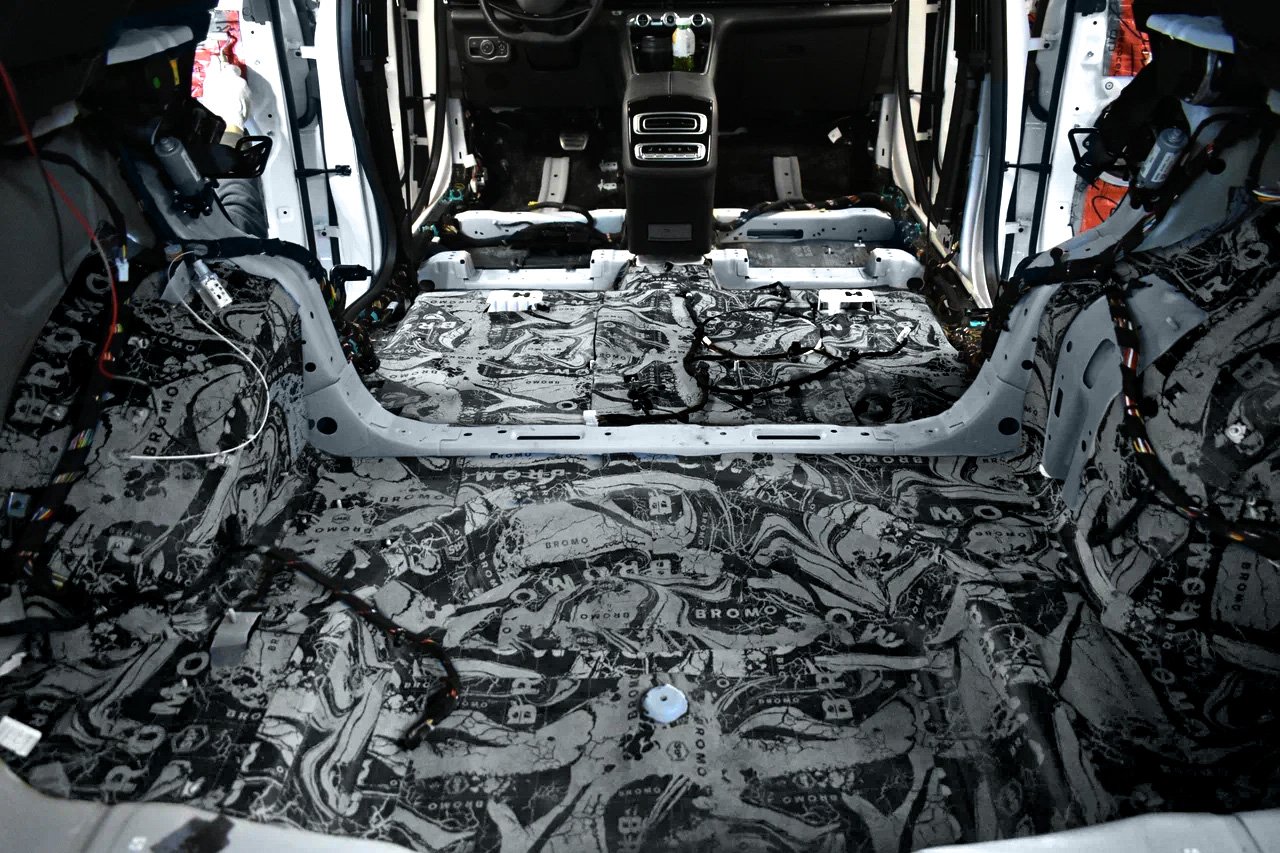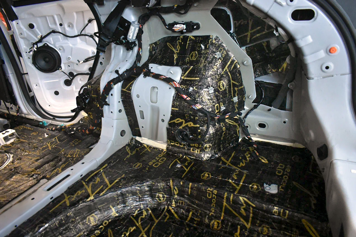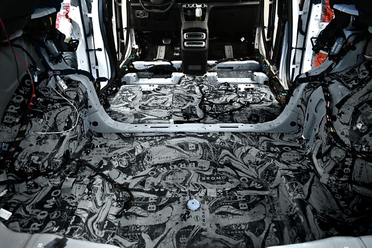 На центральный тоннель и под сиденья второго пассажирского ряда монтируется высокоэффективный сэндвич StP Bromo. Он представляет собой шумопоглощающий слой из вязкоэластичного вспененного полиуретана, покрытый мастичной звукоизолирующей мембраной. Индекс изоляции воздушного шума — 31 дБ.