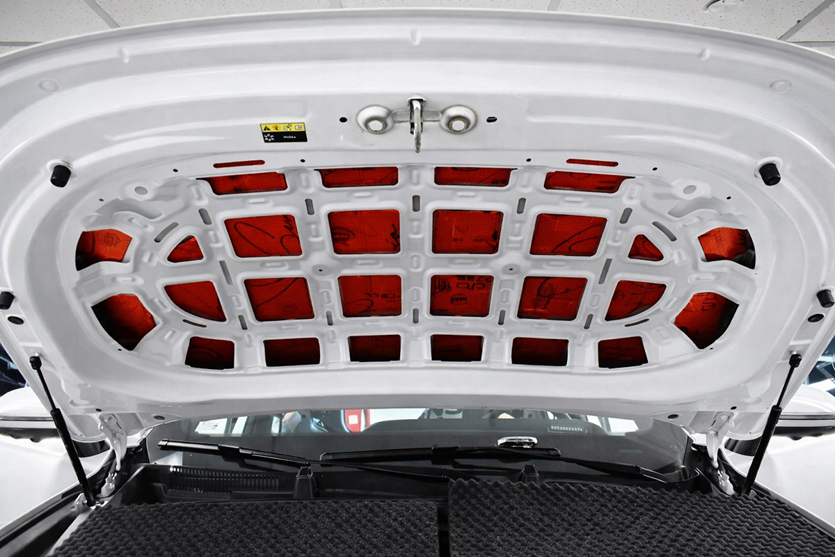 Огромная металлическая панель капота — это отличный резонатор. Без изоляции она вибрирует от работы мотора и потоков воздуха, создавая низкочастотный гул. Вибродемпфер StP Aerocell QP Genio 4 mm снижает этот шум и выполняет роль теплоизолятора.