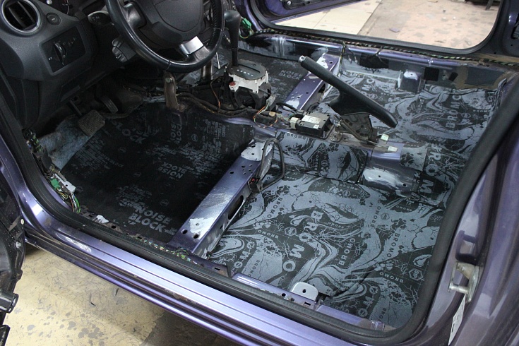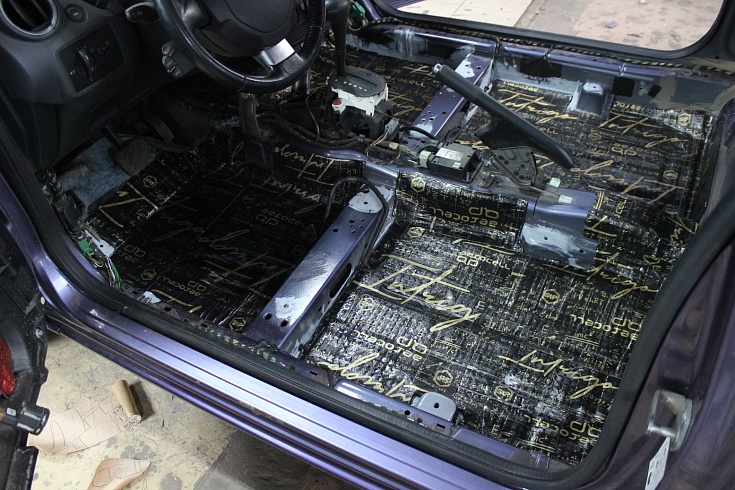 Шумоизоляция пола салона, второй слой – NoiseBlock + Bromo