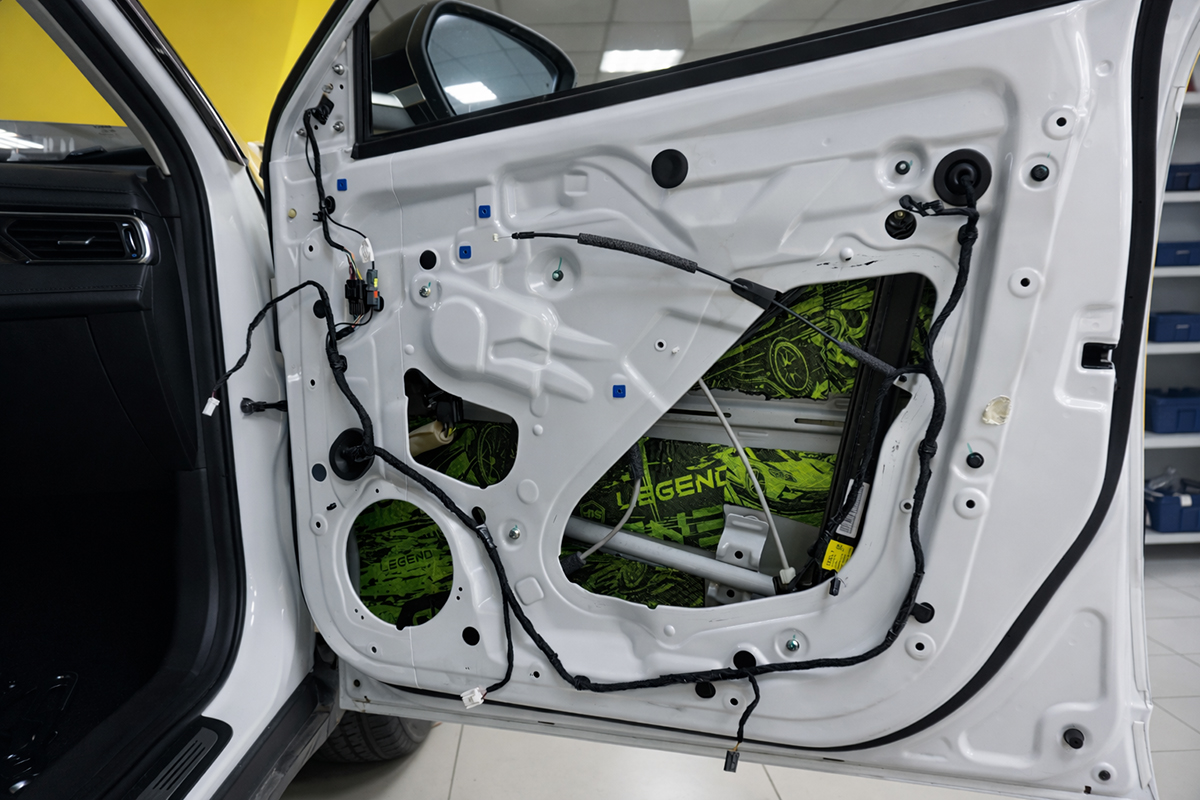 Обработка внешней поверхности (шубы) вибродемпфером обязательна. StP Legend 2 гасит вибрации и выступает в роли дополнительного антикора. Это важный момент, потому что двери — это «самая мокрая зона».