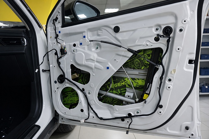 Внутреннюю панель двери также закрыли вибродемпфером StP Legend 2, загерметизировав технологические отверстия.