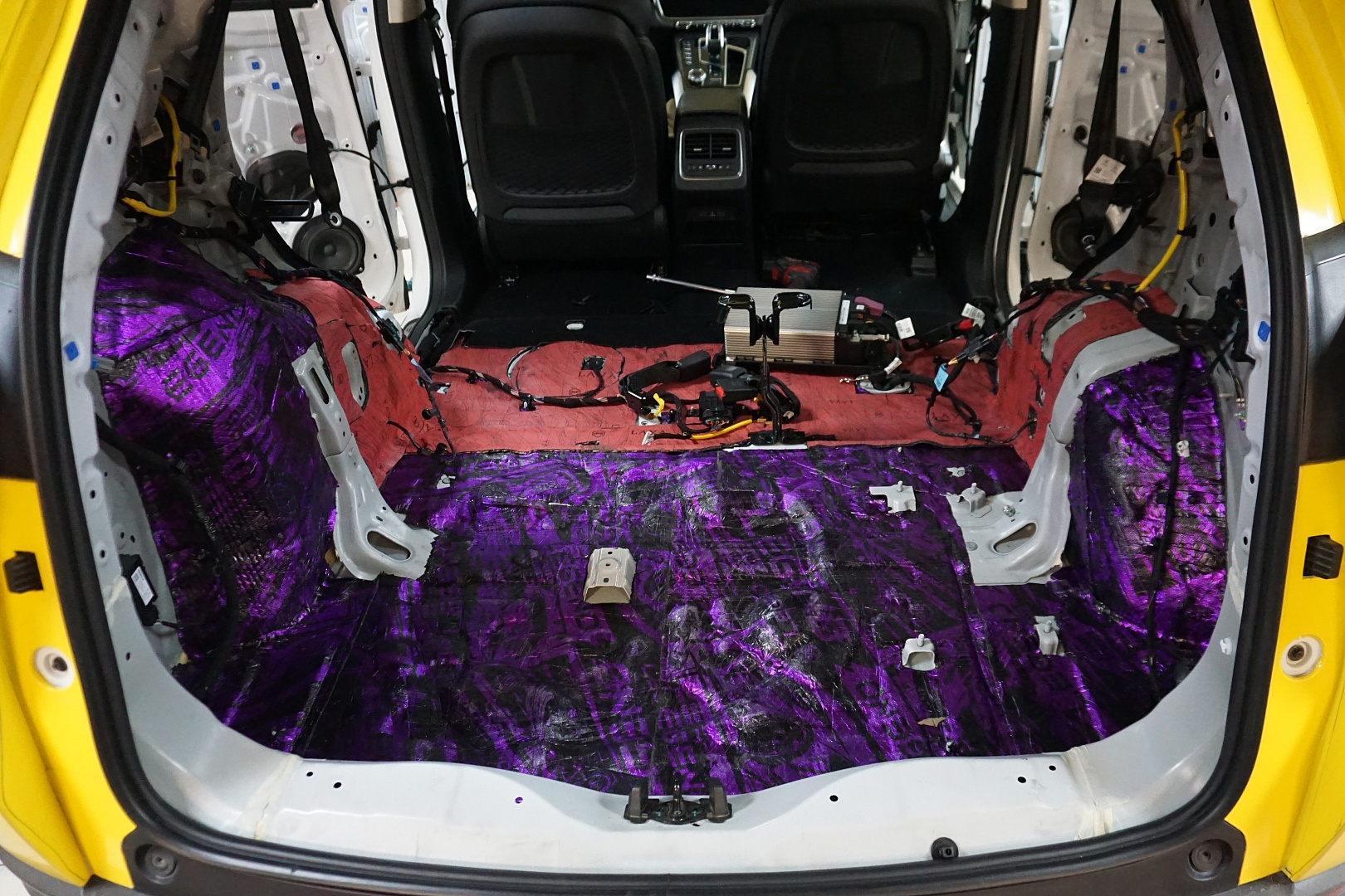 Багажник, в том числе пол, арки, крылья и нишу под запасное колесо, обработали вибропоглотителем StP Legend 4.