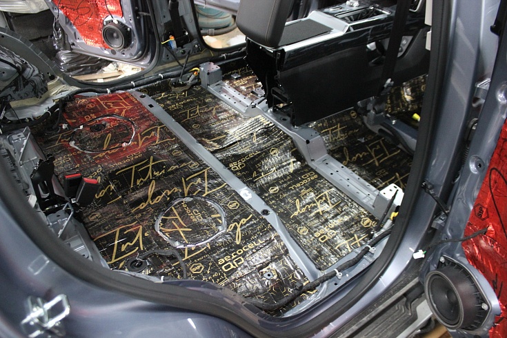 Шумоизоляция пола салона, второй слой – NoiseBlock + Bromo