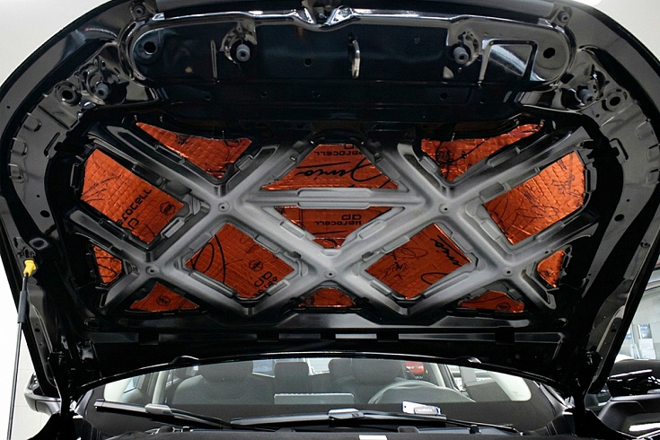 Для снижения шума и вибраций, источником которых является двигатель, обработали нишу капота вибродемпфером Aerocell QP Genio.