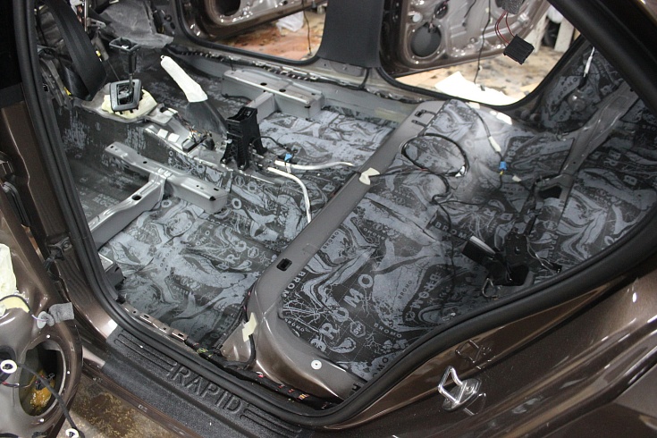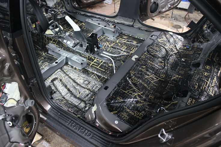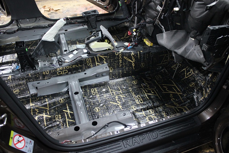 Skoda Rapid – комплексная шумоизоляция с потолком Aerocell Pro + шумоизоляция передней панели