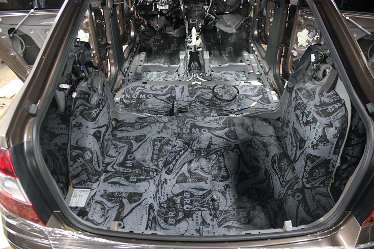 Шумоизоляция пола салона, второй слой – NoiseBlock + Bromo